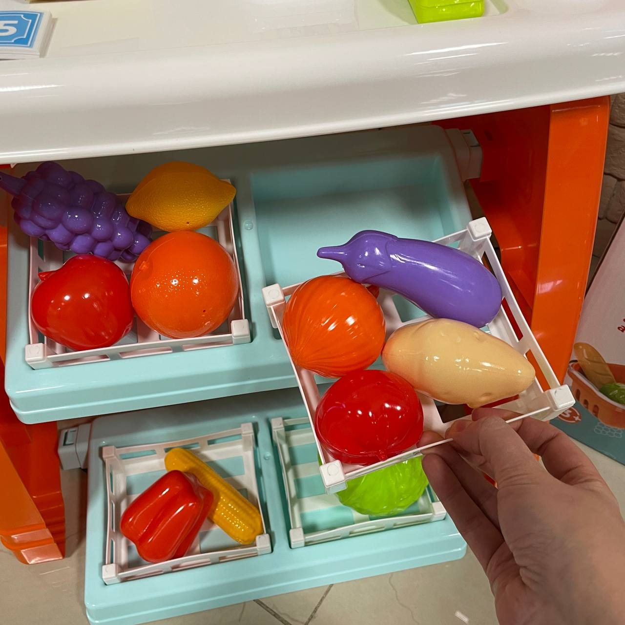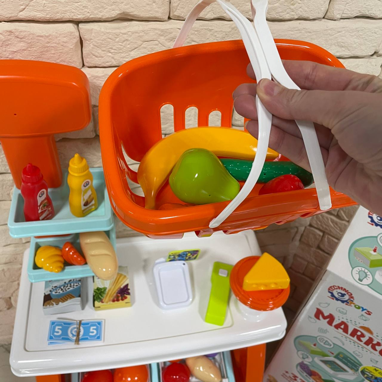 Малыши смогут организовывать свой магазин: сортировать товары, расставляя их на полочках и ящичках. Большая, удобная корзина пригодится для шопинга, позволяя легко "приобрести" необходимые товары.