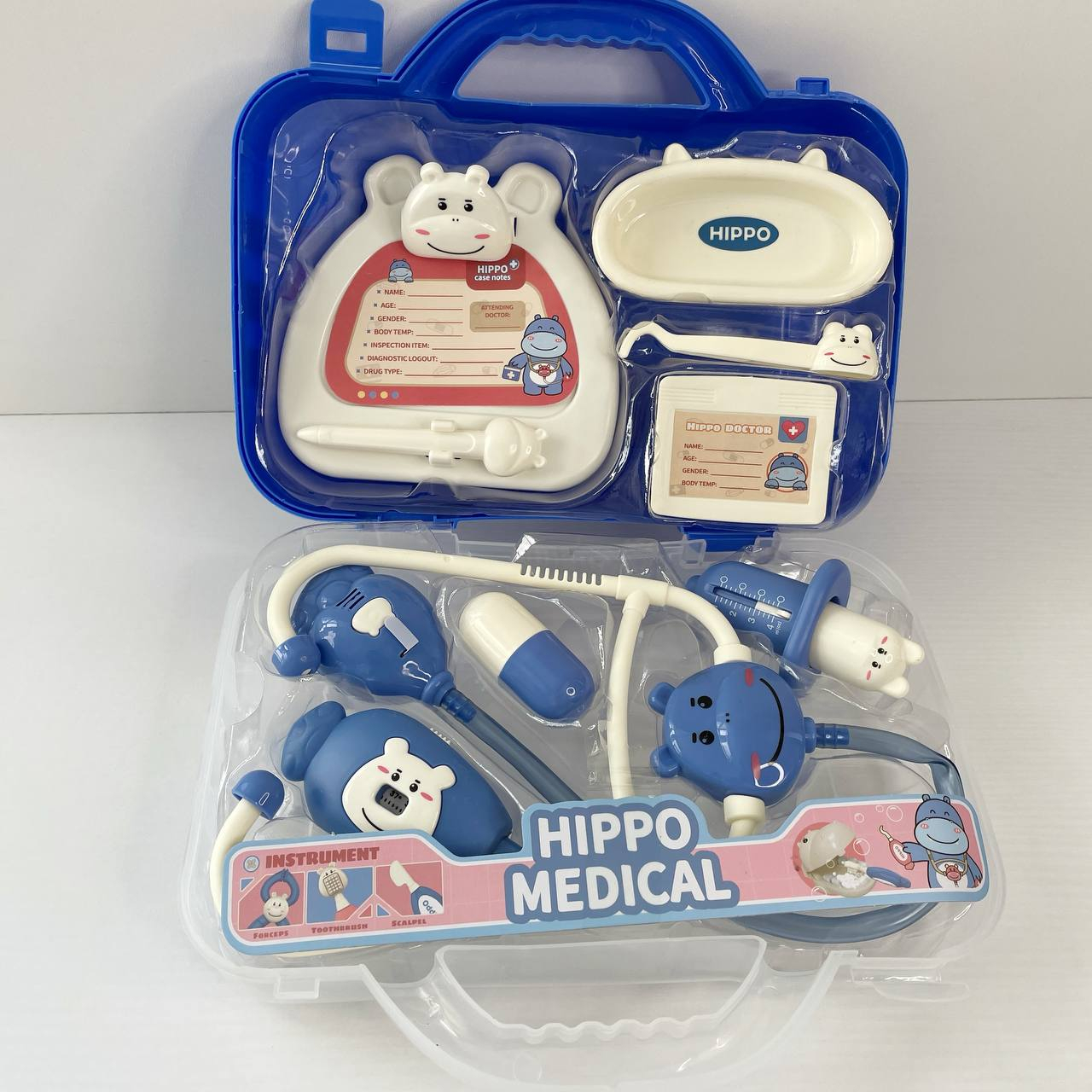 Игрушечный набор доктора - бегемотик в саквояже синий HZ829-A