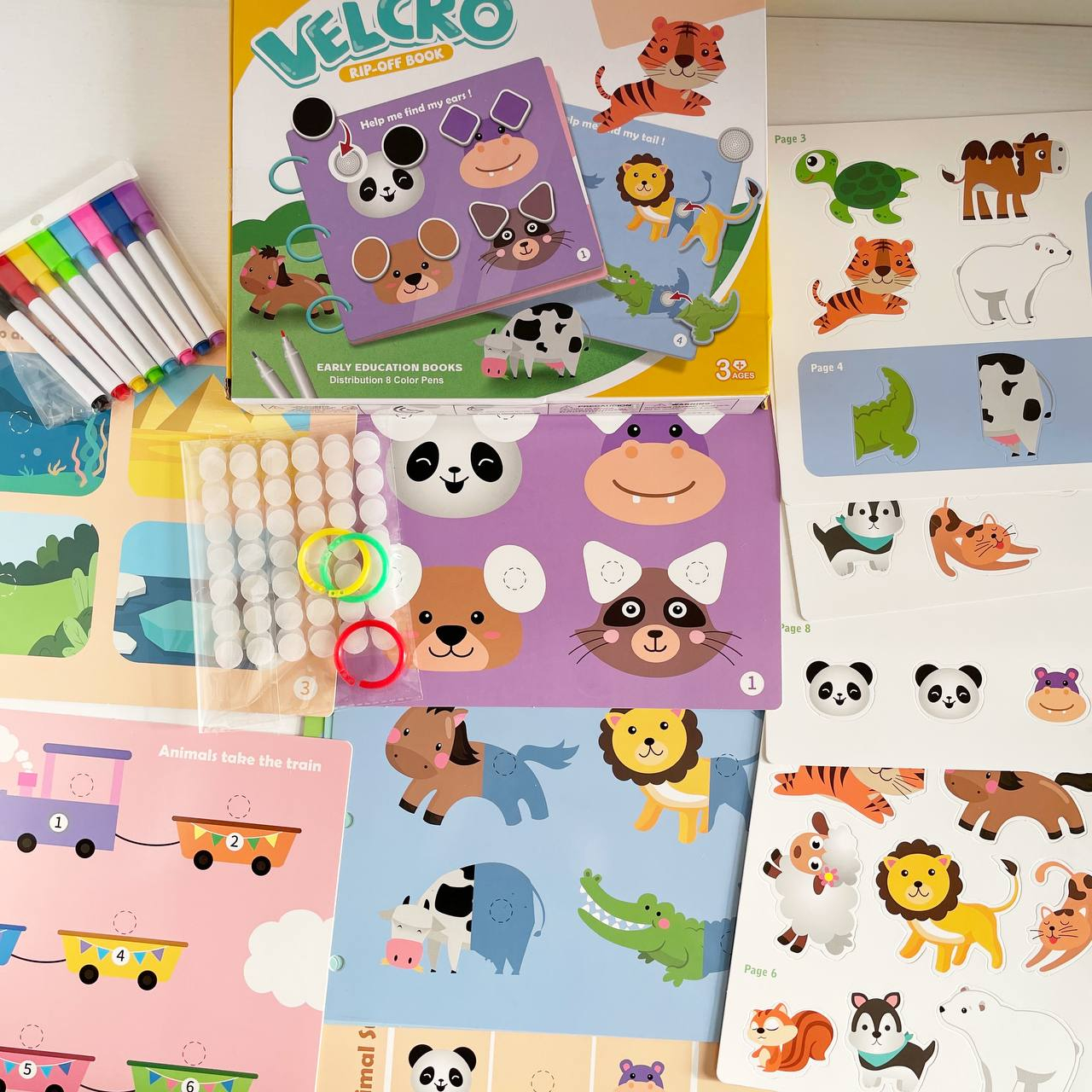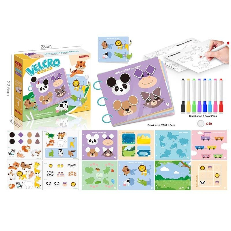 Развивающая многоразовая логическая книга с маркерами и липучками Животные333-4