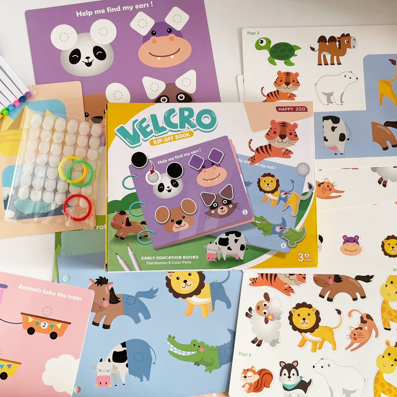 - Всего 16 страниц, каждая из которых двусторонняя: одна сторона – игра с липучками, другая – многократная раскраска.