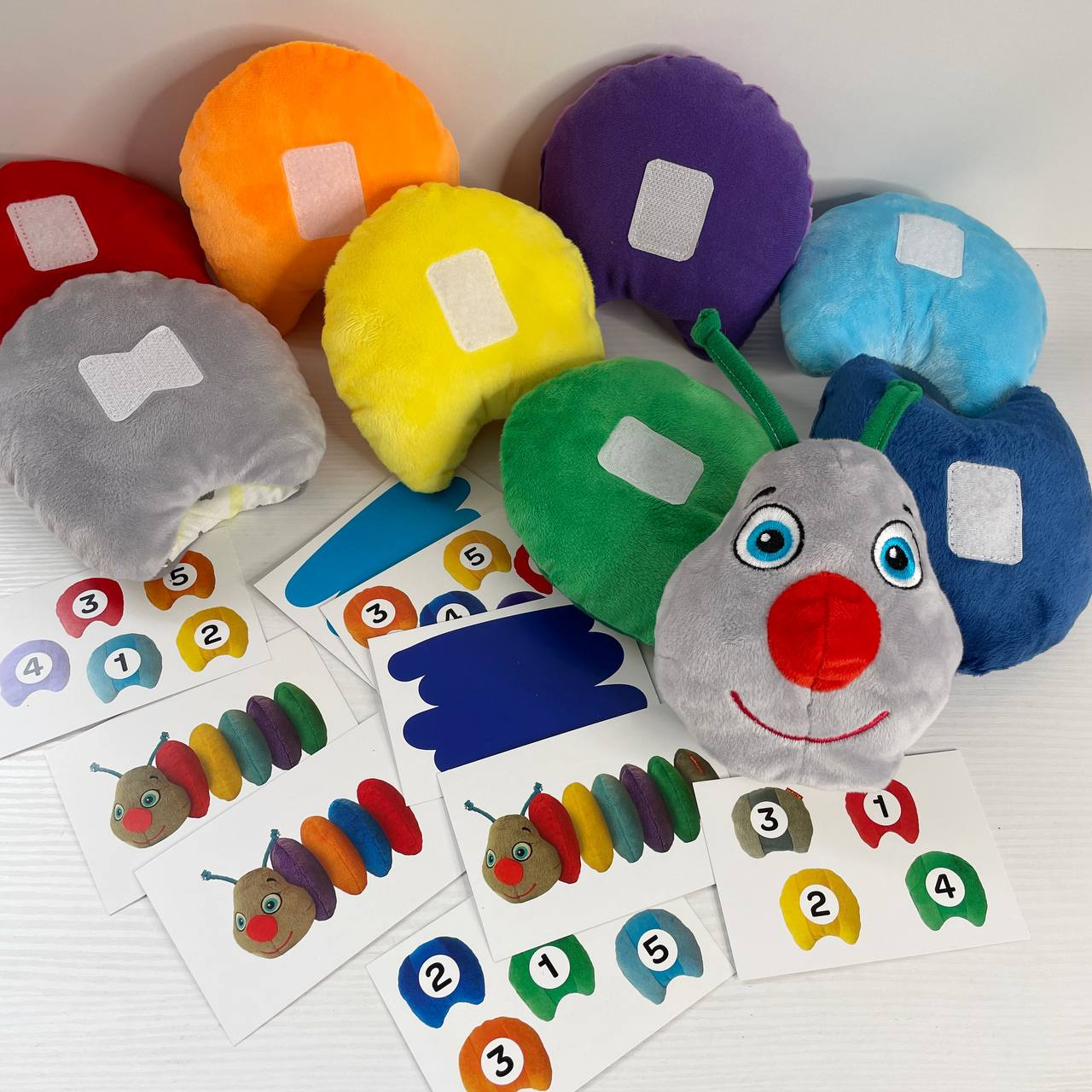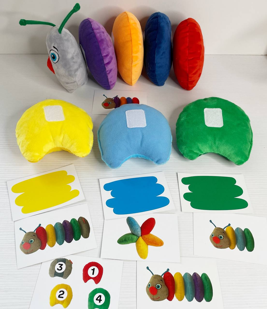 Мягкая развивающая игрушка Гусеница на липучках с карточками, Rainbow Масик MC 040701-01