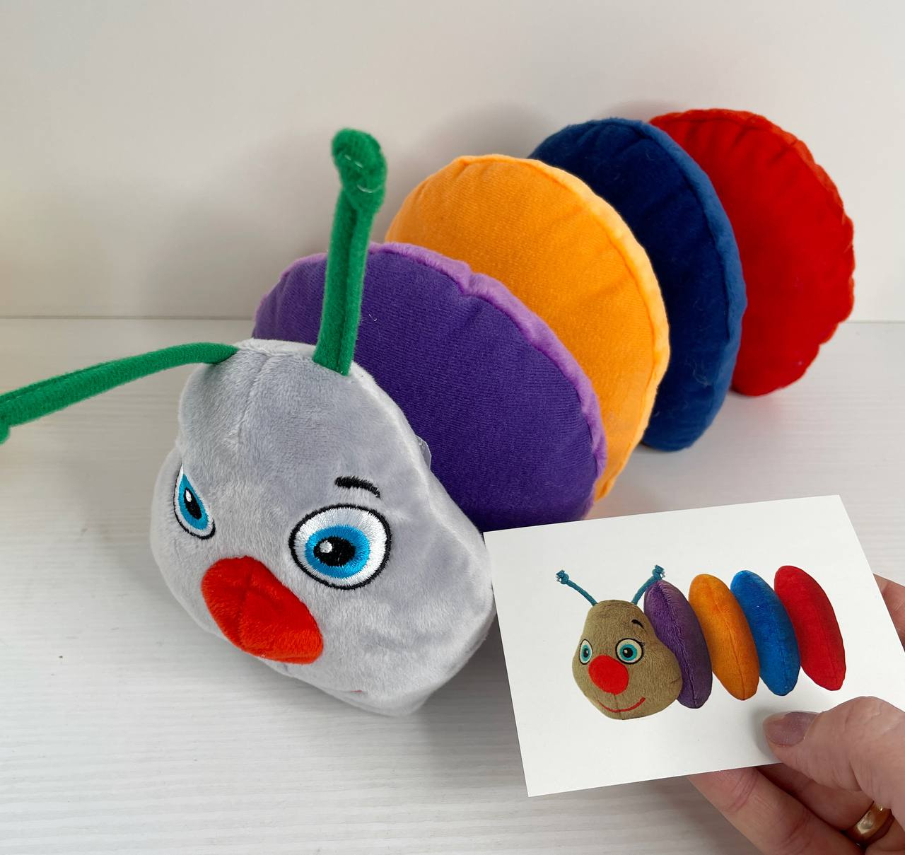 - игрушка выполнена в виде гусеницы;