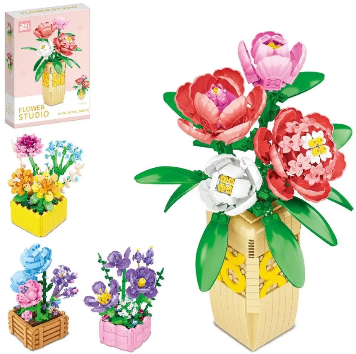 Конструктор 9109A-9113A-9112A-9115A квіти, горшик/ваза, від. 548дет., 4 види, кор., 26-37-7 см.