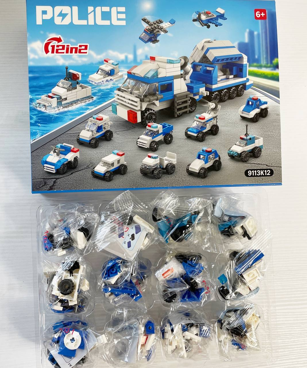 Конструктор полиция, адвент-календарь, транспорт, 12в2 (машина, катер), 9113K12