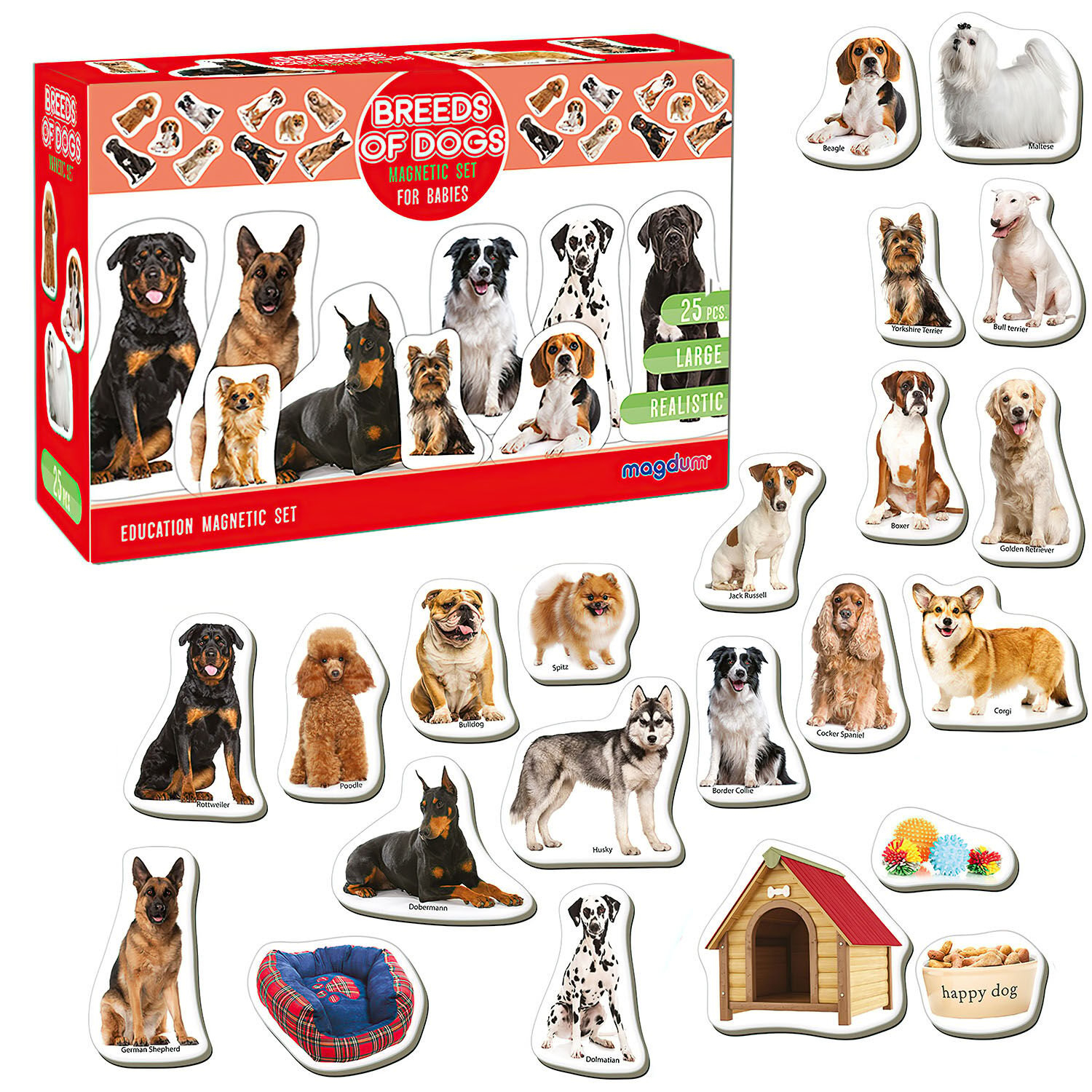 Магниты выполнены из прочного и безопасного материала, что делает их идеальными для игры дома или на холодильнике.Дети смогут создавать разные сценарии, играть в магнитную доску или просто изучать и узнавать больше о каждой породе собаки.