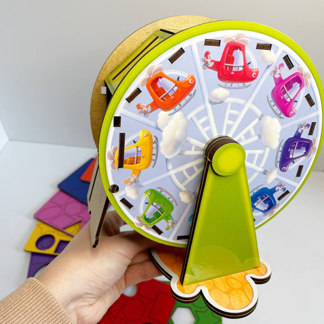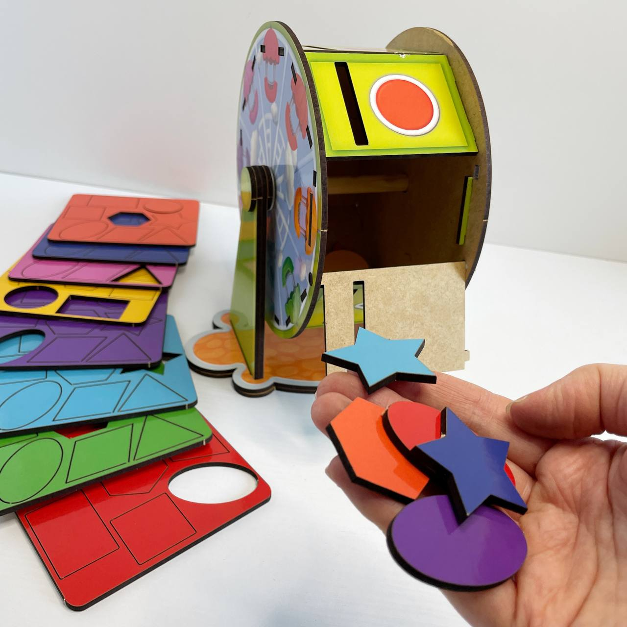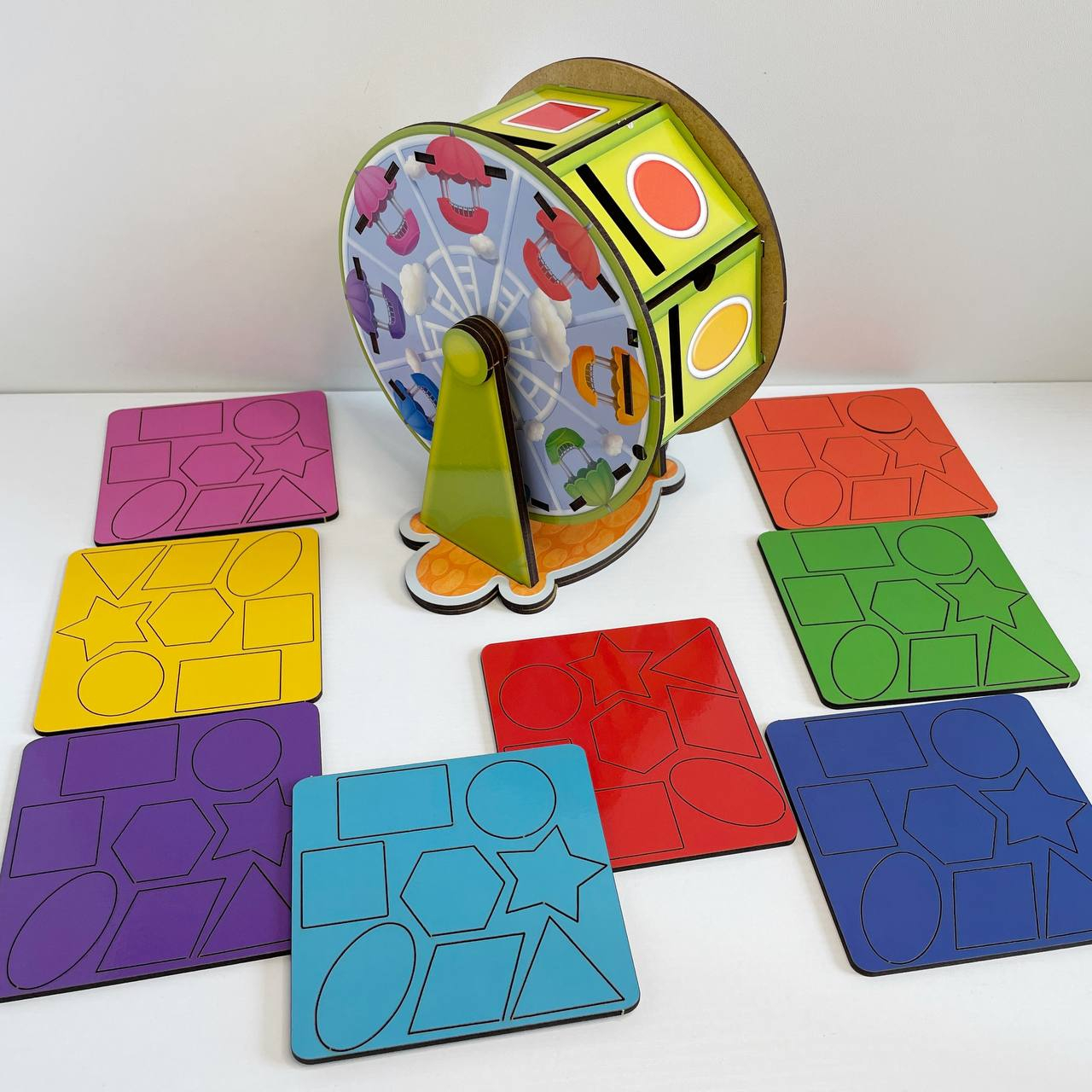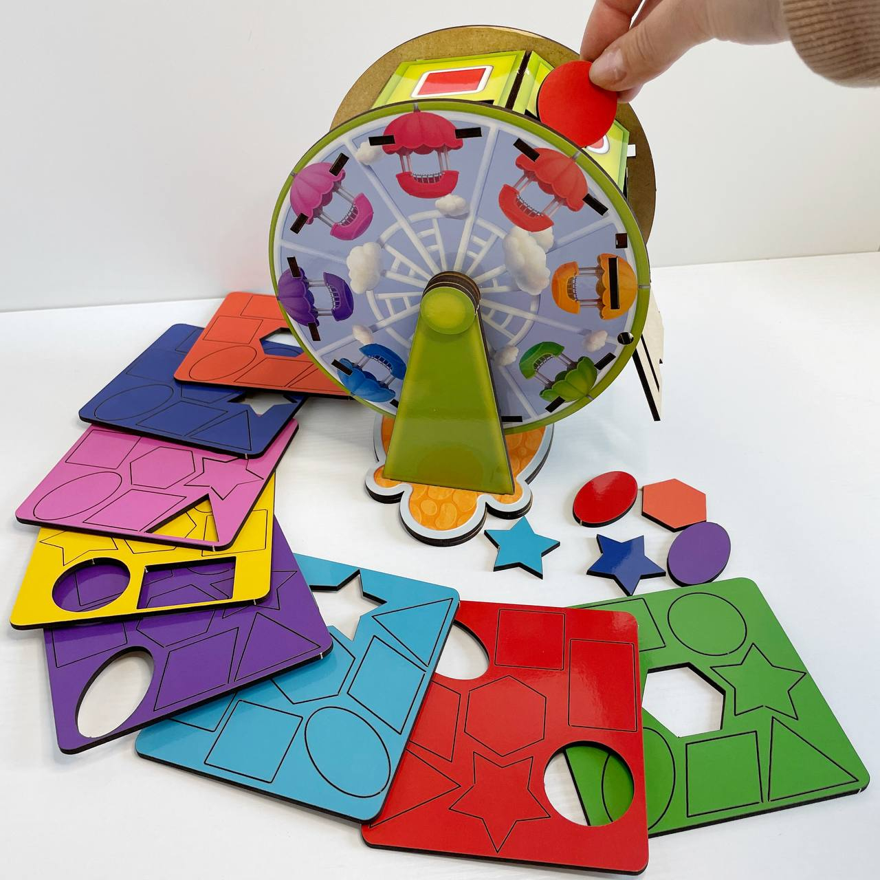 Задача дитини: правильно все розсортувати, обертаючи барабан. Вивчайте кольори, рахунок, геометричнi фiгури. Трафарети з фiгур можна використовувати для малювання. Розвивайтеся, весело граючи!
