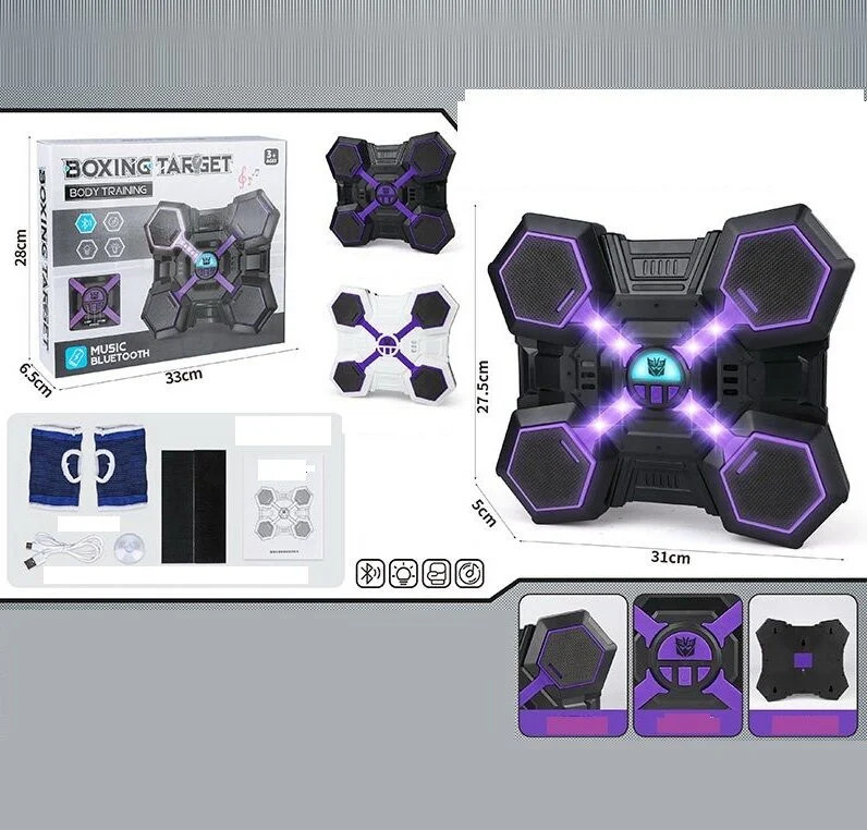 Світлові панелі на дошці спалахують у певному ритмі, вказуючи дитині, куди саме потрібно завдати удару. Завдяки музичному супроводу та світловим підказкам тренування нагадує захопливий рівень у відеогрі, де головна мета — точність та швидкість.