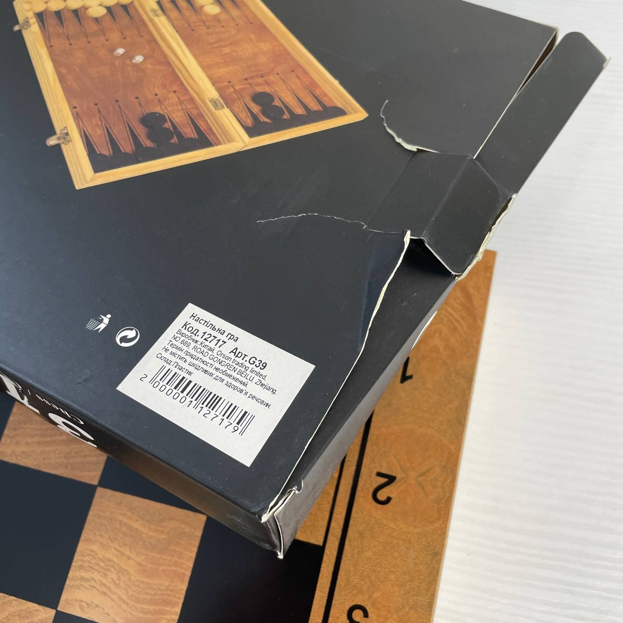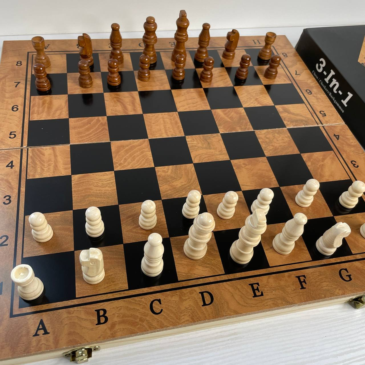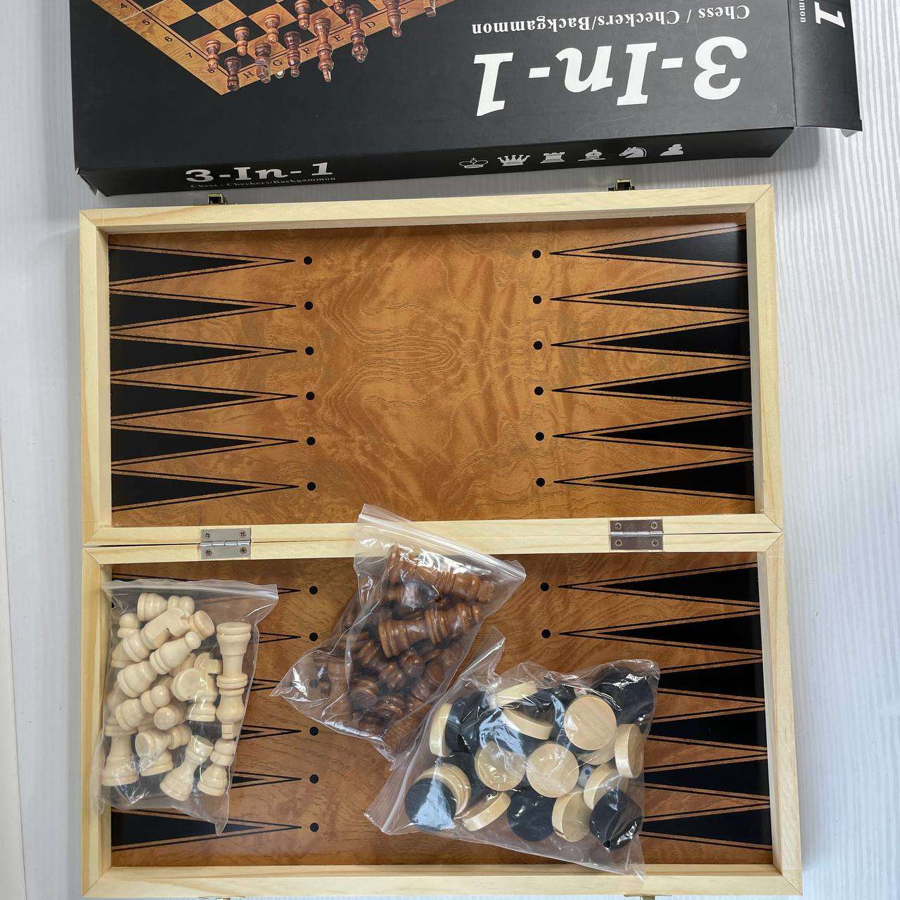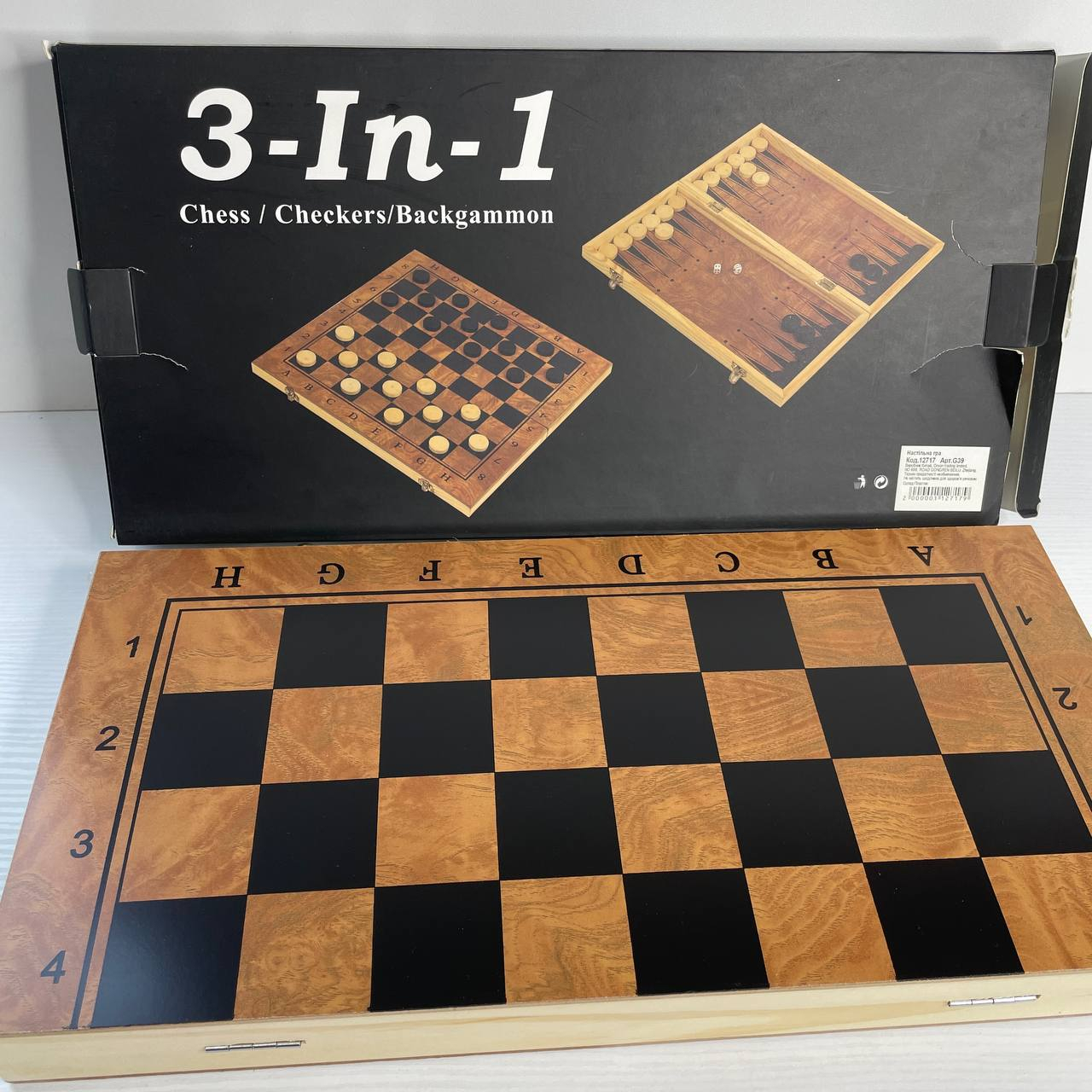 Настільна дерев'яна гра шахи, шашки та нарди 3 в 1 G39 дошка 39х39 см
